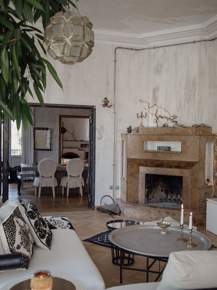 The house showcases an eclectic style, beautifully merging minimalist design principles with Moroccan touches in furniture and decorative objects, as well as select antiques. This thoughtful combination not only adds a layer of visual intrigue but also serves a deeper purpose: influencing the psychology of those who live here. The carefully curated spaces are designed with the understanding that our environments profoundly affect our emotions and mental well-being.